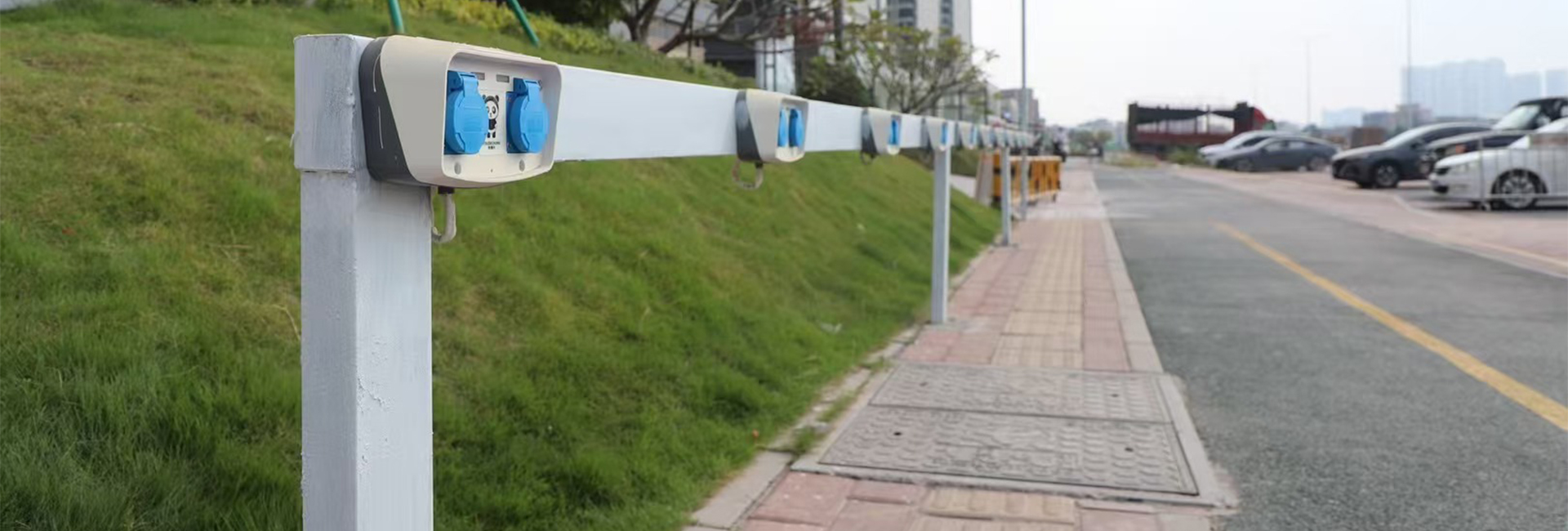 *将你的电动自行车充电器插头牢固插入选定的友德充电桩插座中。